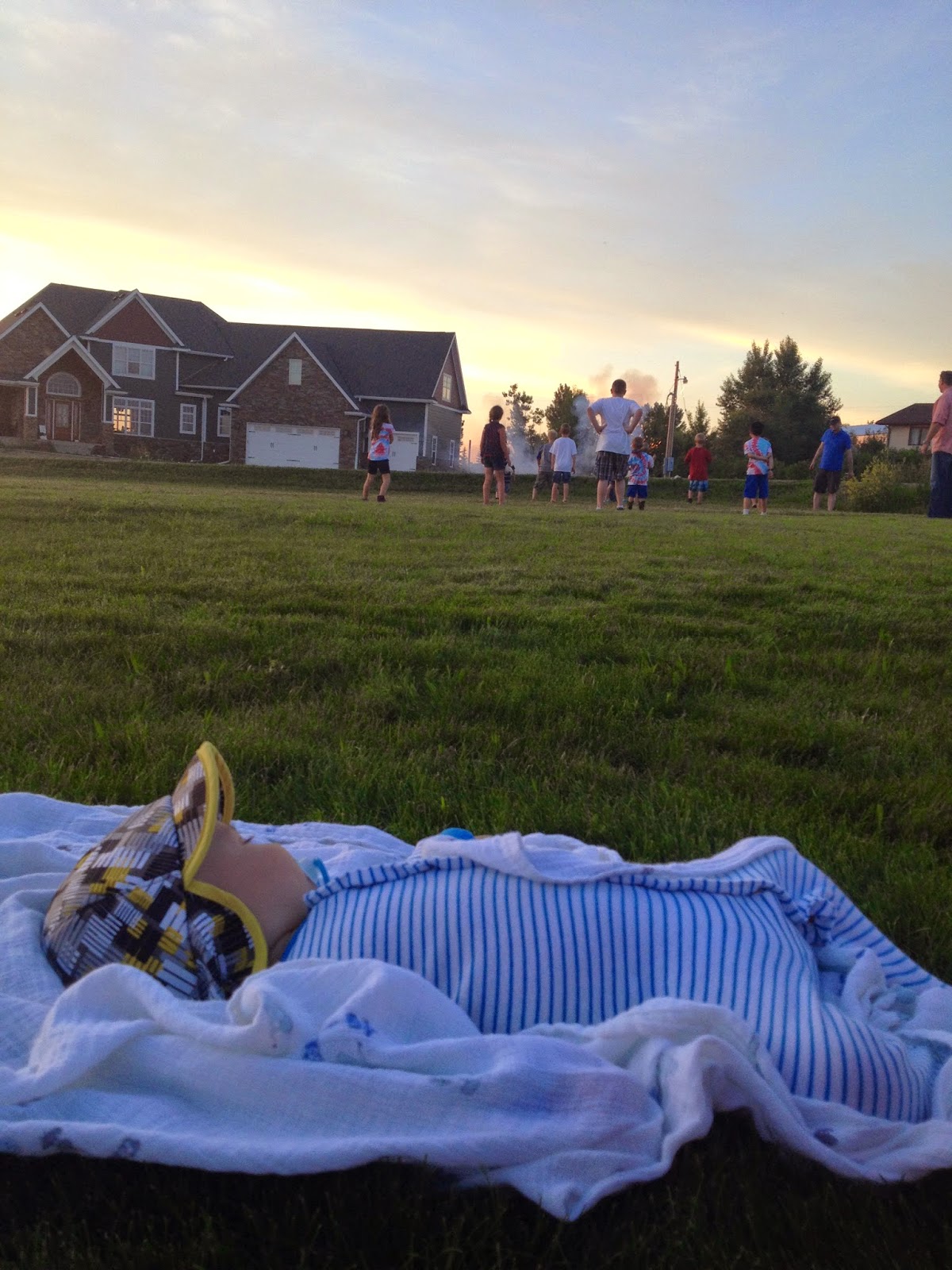 I tried putting Harvey down several times as it got later so we could still hang out and watch the fireworks. Tanner got into the spirit and bought a bunch of big, cool ones. Harvey was NOT having it. So I was about to take him home but when I put him in his car seat, he stopped crying. So I just took him outside and he watched the fireworks. He didn't even hardly flinch when the really loud ones went off. And then he fell asleep outside. That kid.
