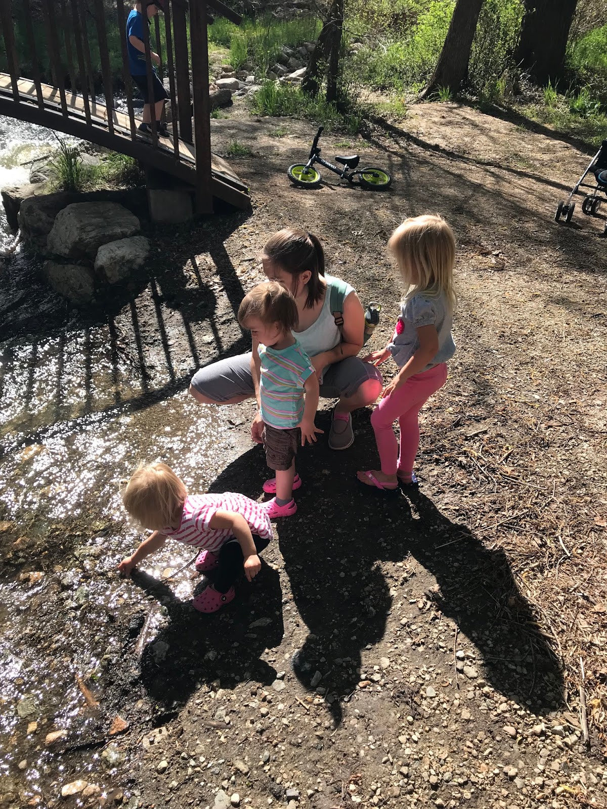 We joined Laura for a inner city hike. I LOVE this trail. It's one of my favorite places. So close and feels so naturey and when the creek is running, it's so awesome. Bair Creek in Kaysville. Awesome. Although we had some great melt downs with the littles (mostly mine). So it ended up being a little stressful for me but it was pretty glorious to be out and Lottie stopped by the creek every time she saw it and yelled "waters!!!" And they all loved throwing rocks. But got a little tired walking back.