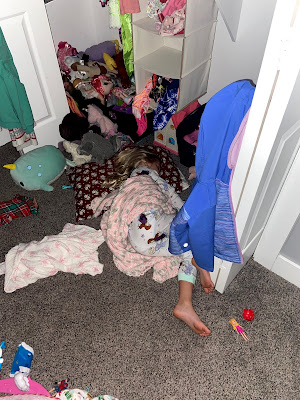 Harvey keeps sleeping in the girls room. And there is an endless possibility of options for sleeping positions found at various times a night. So funny.